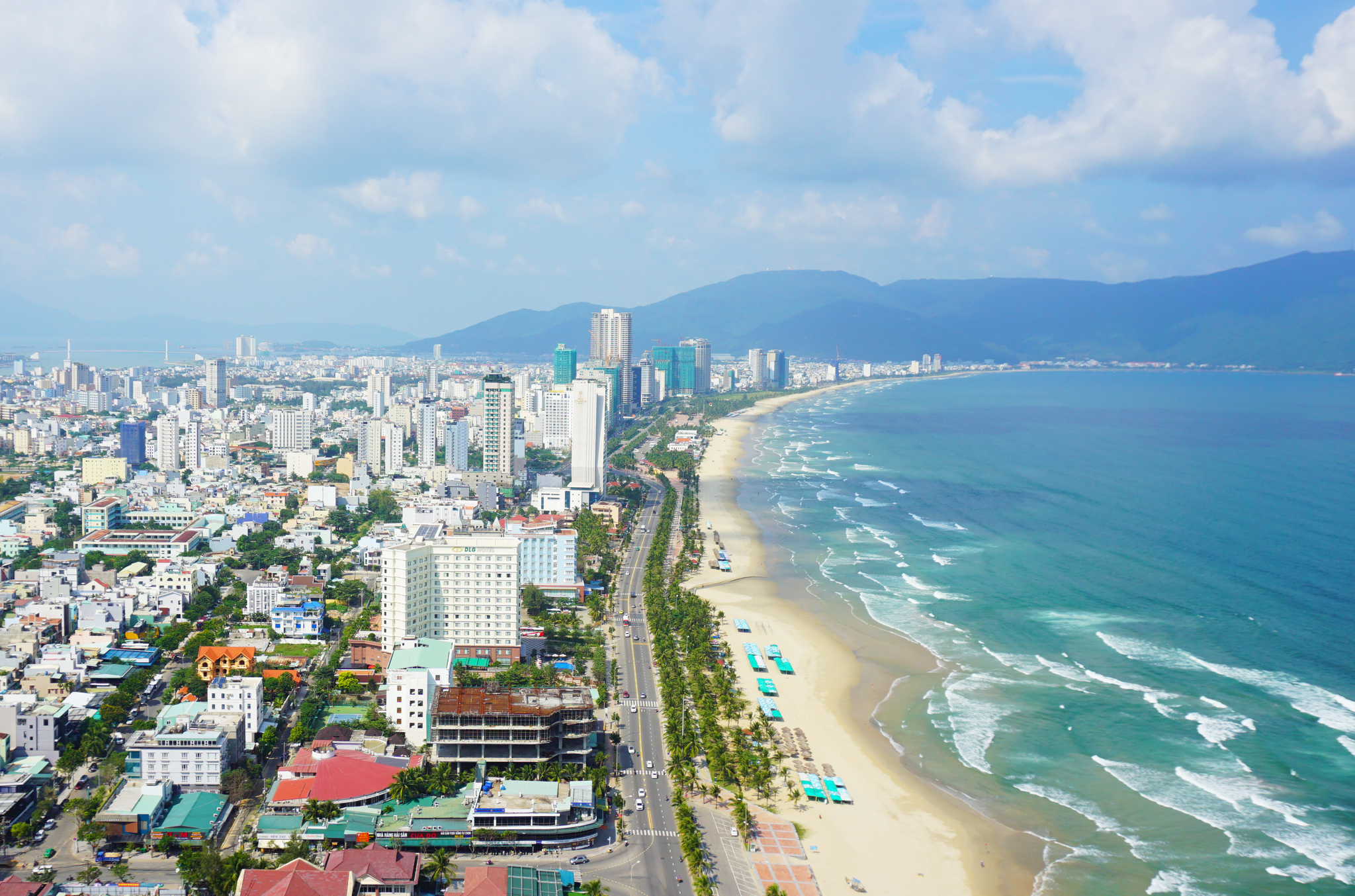 하얀 백사장을 만들어주는 모래는 입자가 곱지만 약간 굴은 편이다. 우리가 즐겨 사용하는 설탕 입자 정도라고 생각하면 비슷할 것 같다. 실제 모래의 색은 하얀색과 노란색이 뒤섞여 있다. 해가 뜨고 지는 시간에는 황금빛으로, 그 외에 시간에는 하얀색으로 보인다. 모래는 해변 이미지에 중요한 역할을 한다. 하얀 모래 위로 부서지는 포말을 보고 있자면 당장이라도 바다로 뛰어들고 싶은 충동이 생겨난다. 반대로 회색 혹은 검은 모래 해변을 보면 차갑고 무섭게 느껴져 그저 바라보기만 하게 된다. 그런 면에서 미케 해변은 휴양지로서 제격이다. 미케 해변 인근에서 머무는 여행자라면 도보나 자전거를 타고 충분히 해변을 오갈 수 있다. 반면 용교 건너편, 대성당 인근에 숙소를 잡았자면 택시나 그랩, 버스 등을 타고 해변으로 접근할 수 있다. 택시, 그랩 등 요금이 저렴해서 이동이 불편함은 없지만 대성당 앞에서 출발하는 5번 버스를 타도 무방하다. 요금은 5,000동이다. 대성당을 출발해 용교를 건너 미케 해변까지 약 20분 정도가 소요된다.