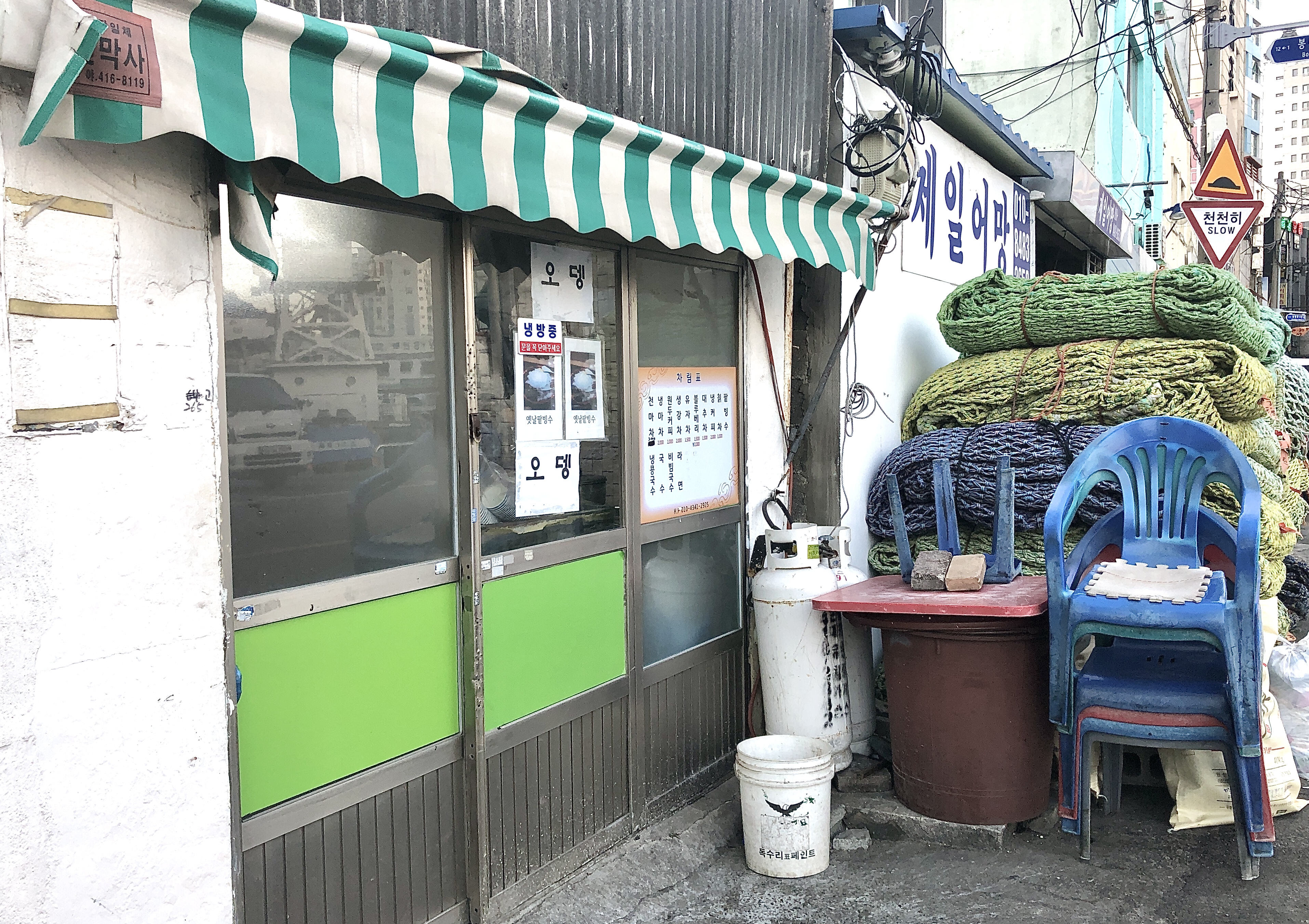 전날에는 보이지 않았던 가게들, 이른 아침 시간이 피크인 작은 노포와 구멍가게 앞으로 사람들이 모여든다. 뜨거운 차와 음료, 간단한 식사 거리를 제공하는 식당 앞에서 서성 거리다 주인 할머니의 손짓에 무안해져 발길을 돌렸지만 그곳의 오뎅탕 맛이 무척이나 궁금해진다. 가게 옆에 작은 자판기는 레트로 감성이 가득해 눈길을 사로잡고 그물 가게에서는 평생 볼 그물을 다 보느라 시간 가는 줄 몰랐다. 대만의 타우청(Toucheng) 지역을 여행하면서 그물 가게에 들러 그물로 만든 가방을 샀던 기억이 문득 떠올랐다. 그물 가게를 지나 선박 수리점을 한 두 개 지나고 이른 아침에 문을 연 가게들과 풍경을 구경하다 객실로 돌아오니 동이 텄다.