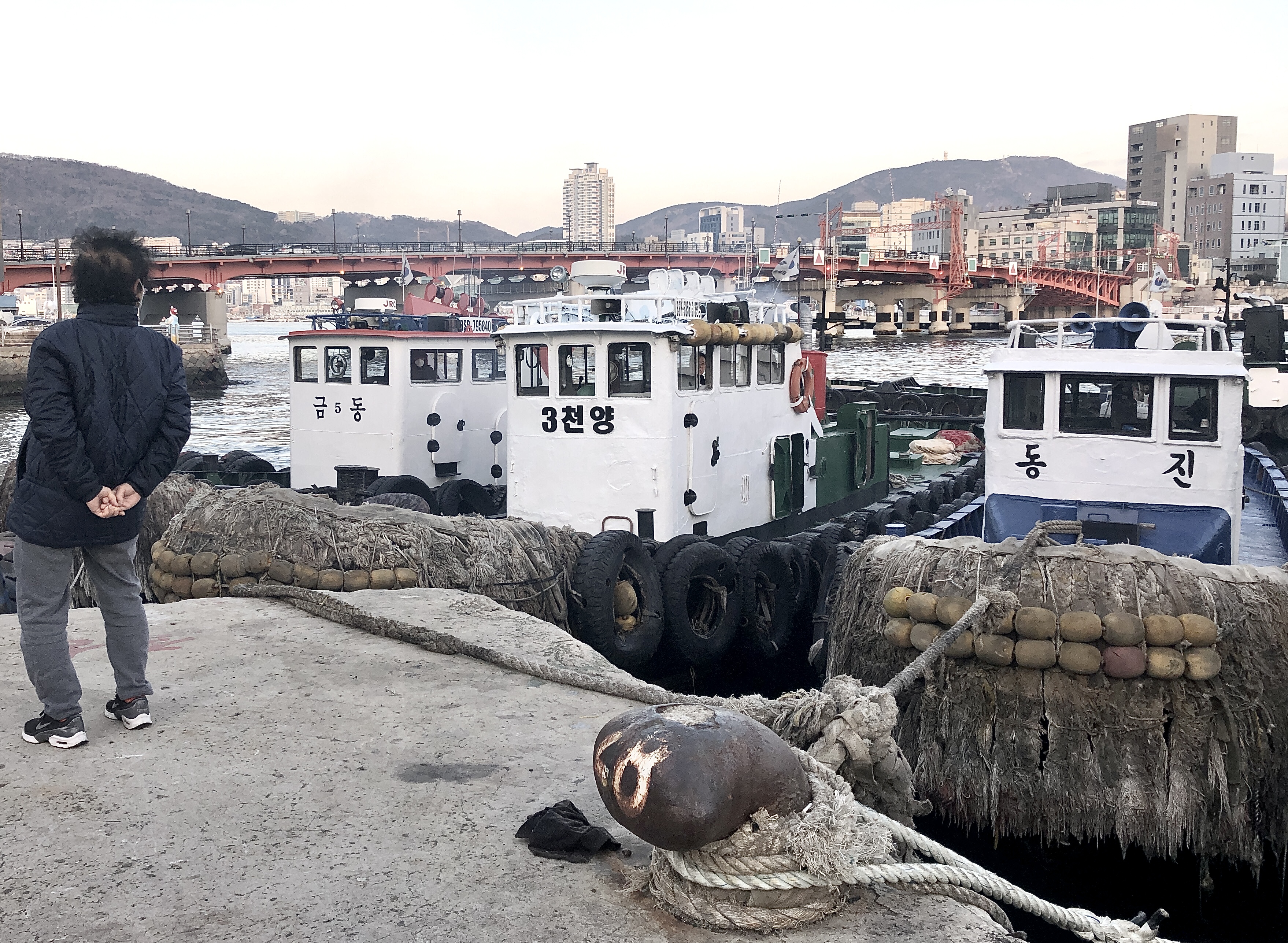 사실 어항의 풍경은 나에게 익숙하지 않다. 더욱이 삶과 직접적으로 연결된 영도의 풍경은 더더욱. 비슷한 해외의 풍경과 비교를 해보니 떠 오르는 곳은 홍콩 타이오(Tai O)정도가 전부다. 영도관광안내센터를 오가며 영도를 둘러보았다. 언제쯤 움직이려나 하던 어선들도 오전 7시가 조금 지나니 출항 준비를 하고 있었다. 항구에 정박된 비슷비슷하면서도 다른 어선들, 이름들을 하나하나 확인하다 보니 나름의 재미가 있다. 실타래처럼 얽히고설킨 선박의 밧줄들이 눈에 띄었다. 선박의 선수, 선미 등에 밧줄을 옭아매 서로가 서로를 의지하고 있는 것이다. 선박 엔진에 시동을 거니 흰 연기가 영도 하늘로 뿜어 오른다. 아슬아슬한 엔진 소리, 디젤 냄새가 코를 찌른다. 출항을 준비하며 마이크로 연신 지시를 내리는 선장과 오랜 경험에서 나오는 바이브로 두터운 밧줄을 부드럽게 풀어내는 선원의 호흡이 잘 맞는다. 그런 모습을 한 걸음 뒤에서 바라보는 나이 지긋한 어머니. 무사 귀항을 기원하는 것 같다. 이내 손을 흔들고 배가 항에서 멀어지는 순간까지 한 참을 서 있다가 발길을 돌렸다. 부산이 따뜻하기는 하나 아침 공기는 꽤 쌀쌀하다. 가까운 카페에 들러 커피 한잔 마시고 싶었지만 영업시간 전이라 편의점에서 끊을 수 없는 매력의 믹스 커피 한잔을 사 와 다시 밖으로 나왔다.