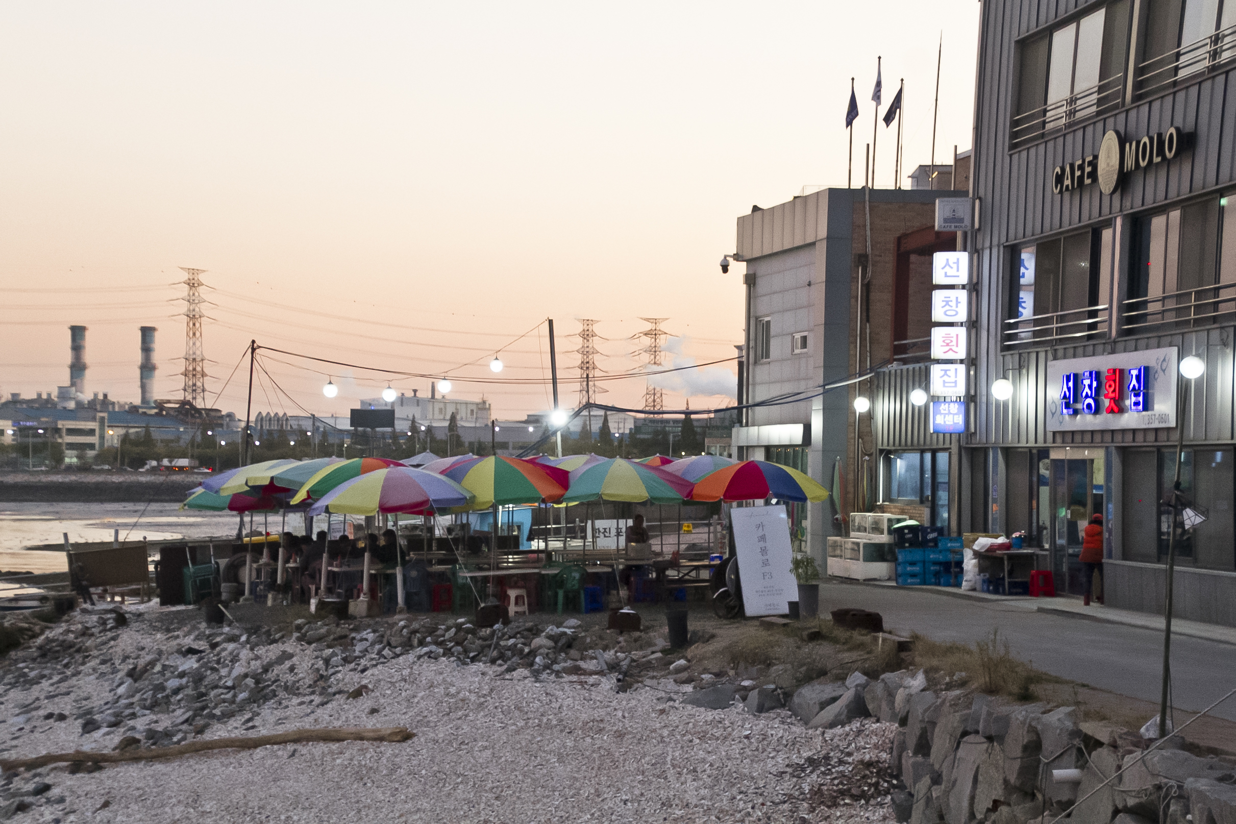 현충사를 떠나 도착한 곳은 한진포구다. 원래 가려던 곳은 아니였다. 해넘이를 보고 싶은 마음에 당진의 몇몇 포인트들을 알아보다 생각보다 해넘이가 일찍 시작하는 바람에 그냥 가까운 바닷가로 향하게 된 것이다. 시간적인 여유가 있었다면 분명 다른 곳으로 갔을 것이다. 한적한 포구 안쪽에 횟집들이 바닷가 앞에서 본격적인 장사를 시작하고 있었다. 이미 저녁을 먹고 온 뒤라 잠시 고민하다 그냥 발길을 돌렸다. 포구를 돌아 나오는 길에 만난 풍경이 발길을 멈추게 만들었다. 핑크 빛으로 물든 포구의 모습이 무척 낭만스러워 보였다. 회라도 한 접시 포장해서 숙소로 갈까 고민을 하다, 편의점에 들러 간단히 먹을 수 있는 간편식을 샀다. 맛있는 음식, 좋아하는 음식이 없다는 것이 무척 한심해 보였지만 간단히 먹고 쉬는 것도 좋을 것 같았다. 숙소에 도착해보니 무려 70인치 벽걸이 TV가 걸려있다. 방이 작아서 그런지 유독 크게 느껴졌다. 오랜만에 영화와 드라마를 시청하며 당진에서의 하룻밤을 보냈다.