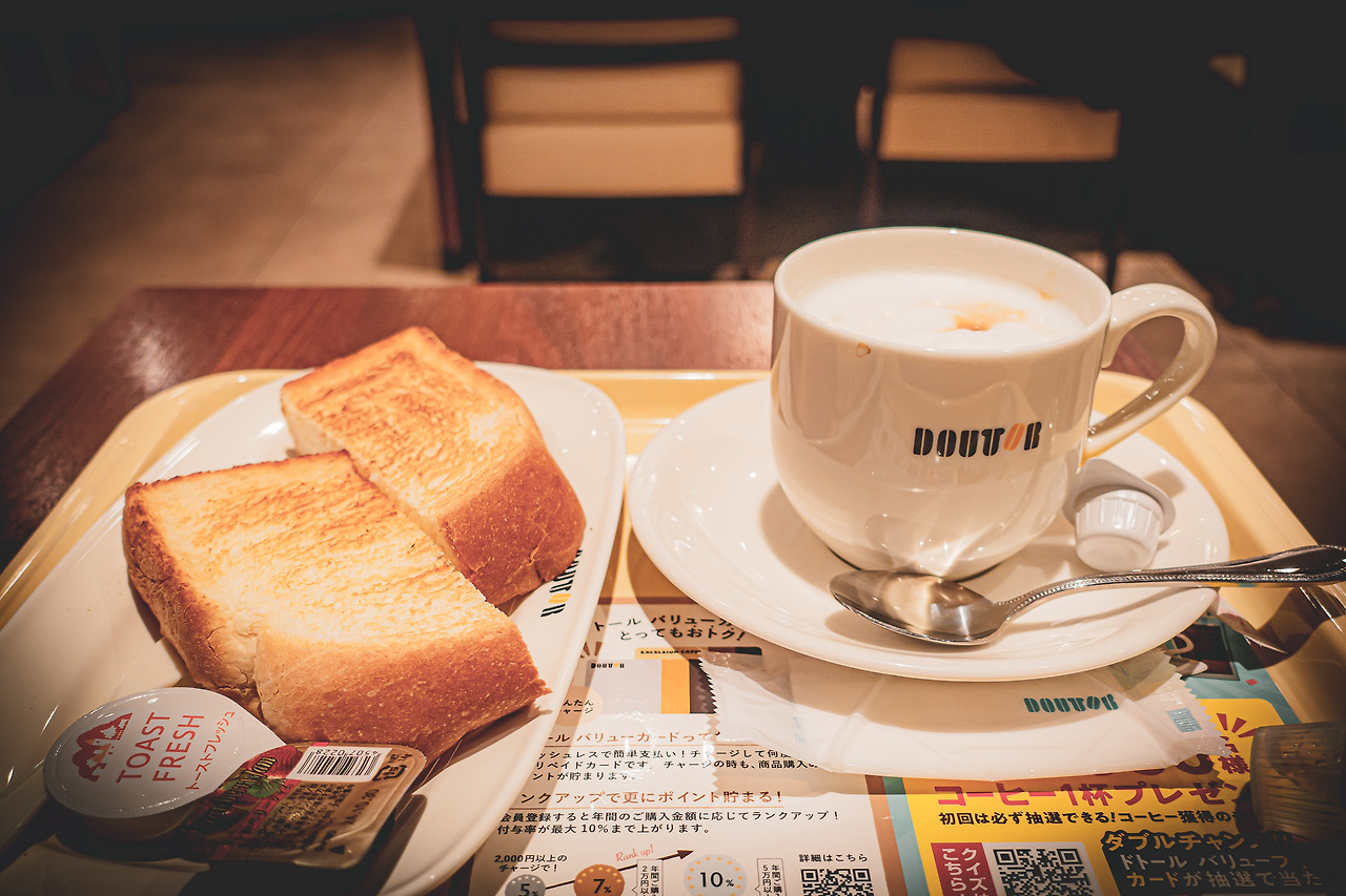 배가 고프긴 나도 마찬가지. 일단 비가 내리니 비를 피할 수 있는 지붕이 달린 아케이드로. 다행히 도톤보리, 신사이바시 등 비를 피할 수 있는 곳들이 많다. 위, 아래, 옆으로 빠르게 스캔해서 찾은 곳이 도토루(Doutor)다. 이미 한국에서 철수한 브랜드이지만 여전히 나에겐 많은 추억이 있는 곳. 무엇보다 길게 줄을 설 필요 없이 주문이 가능해 보였다. 도토루는 가장 친한 친구 녀석이 한국 철수를 앞둔 마지막 시점까지 명동점에서 일을 했기에 그곳은 우리의 아지트나 다름없었다. 만약 녀석과 함께 일본 도토루에 온다면, 성격 상 그 녀석은 자신의 청춘을 묻어버린 도토루 앞에서 울어버릴지 모른다.