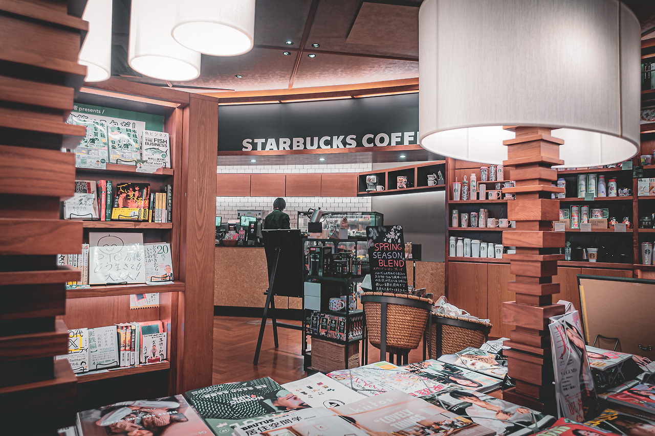 몇 걸음만 더 걸어가면, 스타벅스와 츠타야 서점의 합작물을 만날 수 있는 공간도 있다. 커피도 마시고 책도 보고. 2층 건물로 작지만 나름의 할당된 일을 하며 잠시 커피 한잔 하기 좋다. 그래도 몇 권의 책을 출간한 여행작가다. 서점에 들러 책을 훑어보고 마음에 들면 사는 것이 나만의 루틴이자 여행의 즐거움이다. 재미난 것은 가이드북이 판형이 3가지로 출간되고 있다는 점이다. 내용은 동일하고 가격도 같다. 필요한 정보를 찾기도 하고 전기 도둑이 되어 충전도 하고 커피도 한 잔 마셨다. 기계가 아닌 직접 우유를 스팀 해서 제공해 주는 것이 신선한 정도였다.
