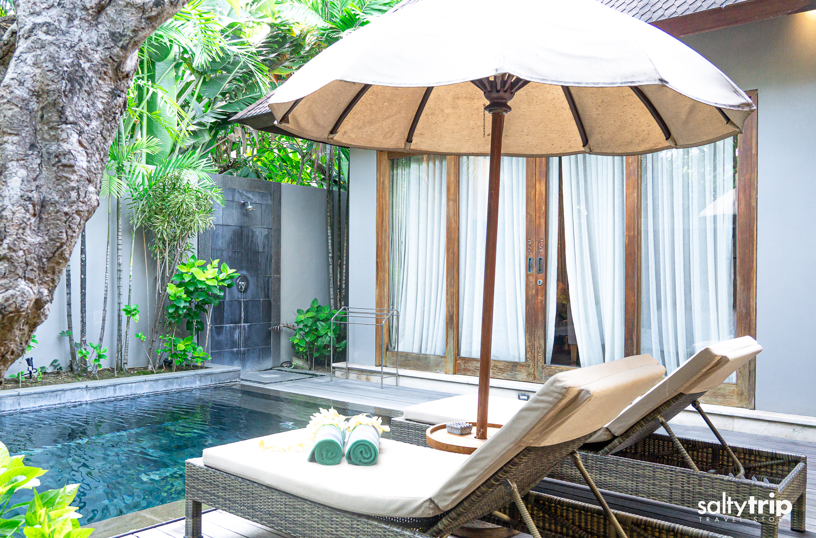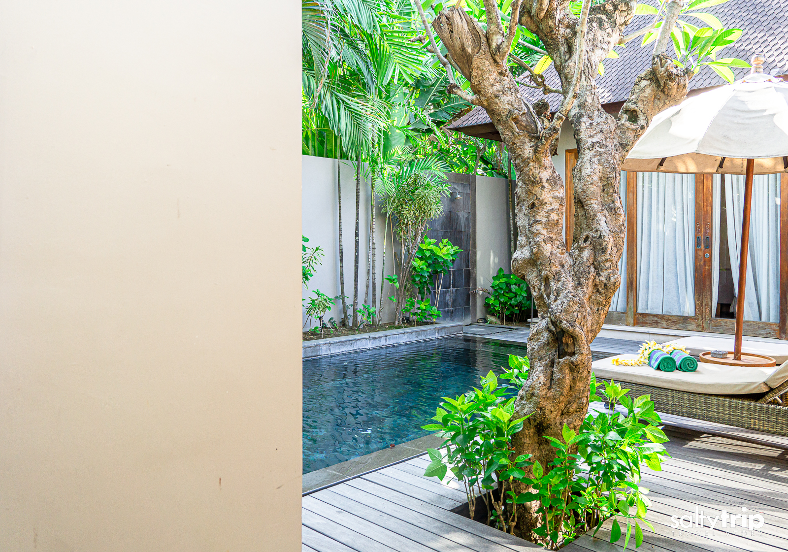 1베드룸의 크기는 무려 24m2, 7평이 넘는 사이즈다. 성인은 물론 아이와 함께 놀아도 될 사이즈. 온도는 아침, 저녁으로는 조금 차갑게 느껴지고 낮에는 시원하게 놀기 좋은 온도. 깊이는 1.4m 정도. 낡아 보이는 파라솔과 선베드 패드가 조금 더 화사했더라면 하는 작은 아쉬움 정도. 저녁에는 은은한 조명이 들어와 조금 더 로맨틱한 분위기를 연출한다. 물론 발리의 특성상 몇 가지 아이템을 새로 교체를 하면 분명 가격이 올라간다. 때문에 가성비를 유지하기 위해서는 지금 이대로도 괜찮다.