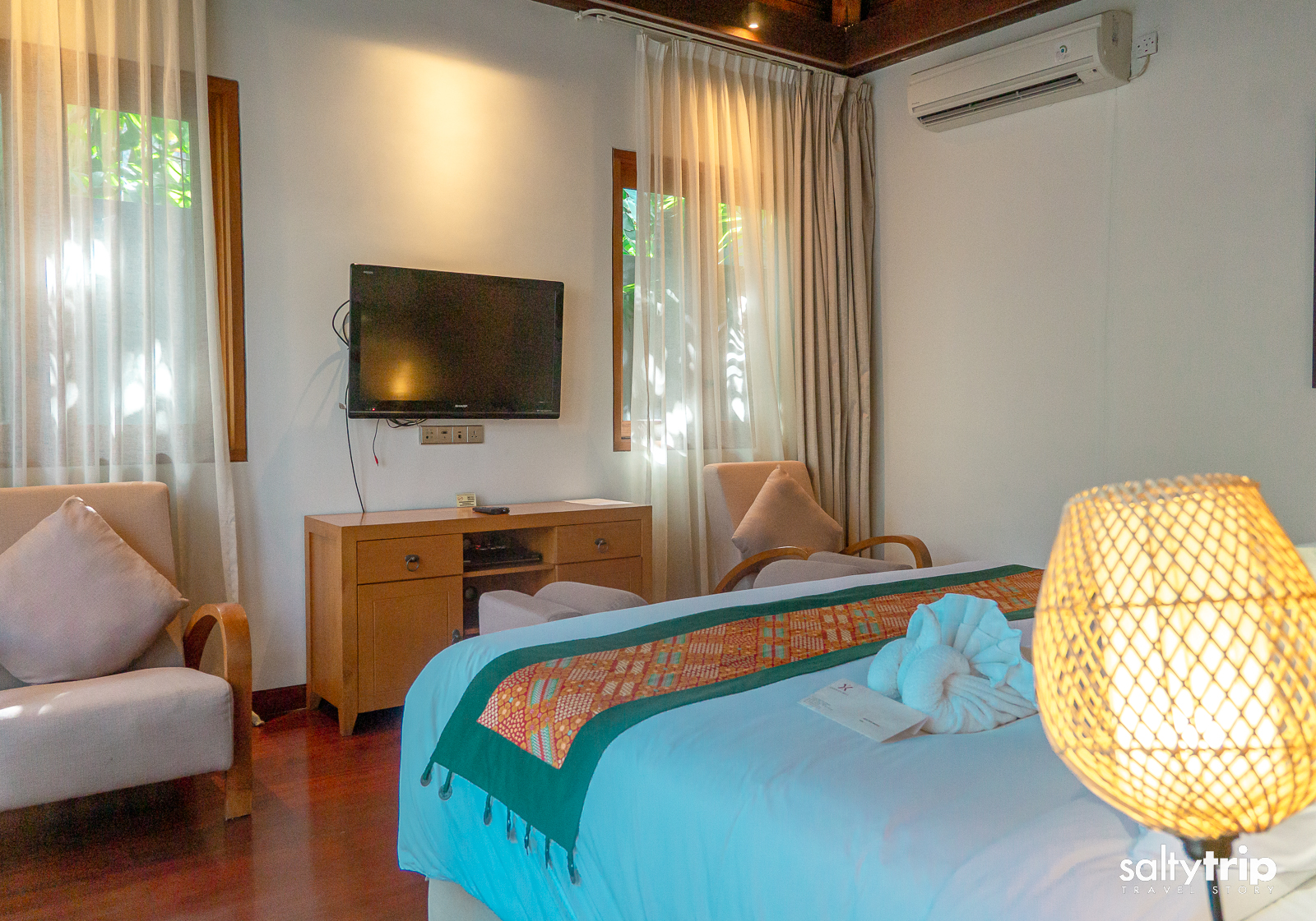 침실은 킹 사이즈 침대와 1인 소파, TV, 옷장, 금고 등이 있고 욕실은 샤워 시설과 화장실, 대형 욕조, 헤어드라이어, 어메니티 등이 구비되어 있다. 무엇보다 전통 양식으로 지어진 높다란 천장이 눈에 띈다. 천장에 매달린 실링 팬은 에어컨으로 조절할 수 없는 미세한 온도를 조절해 주는 기능도 있어 여러모로 유용하다.